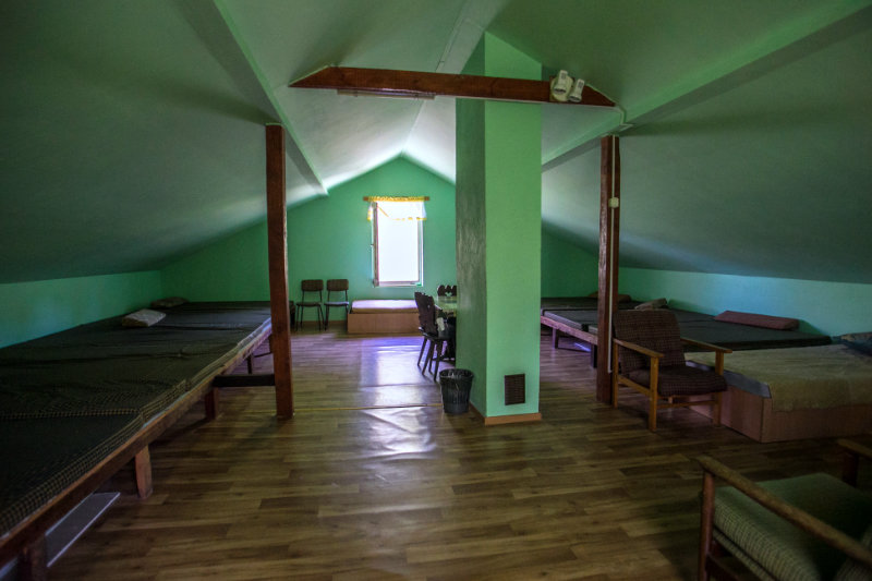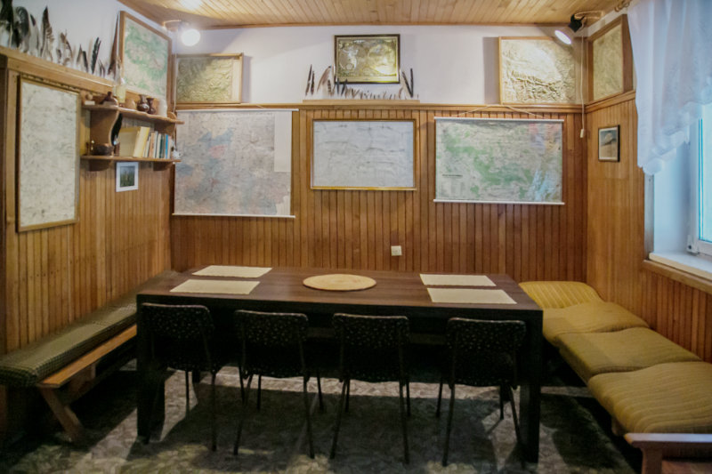 Chatka zewnętrznie wydaje się być małą i pewnie dlatego większość turystów wchodząc do środka zaskoczona jest jej pojemnością.Z sieni wejściowej w prawo znajduje się świetlica z otwartym kominkiem, który skutecznie ogrzewa cały budynek. Do świetlicy przylega czteroosobowy pokój gościnny. Po lewej stronie znajduje się mała kuchnia z pełnym wyposażeniem i schody na strych, który zajmuje całą powierzchnię Chatki i stanowi całkiem sporą salę wieloosobową (zwaną „noclegownią”).W osobnym budynku znajdują się toalety, a w głównym pomieszczeniu jest też dodatkowy piec gazowy przydatny dla większych grup.